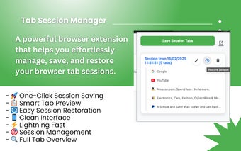 مدير جلسات التبويبهو برنامج مجاني لـ Chrome، ينتمي إلى فئة 'الإضافات والأدوات'.